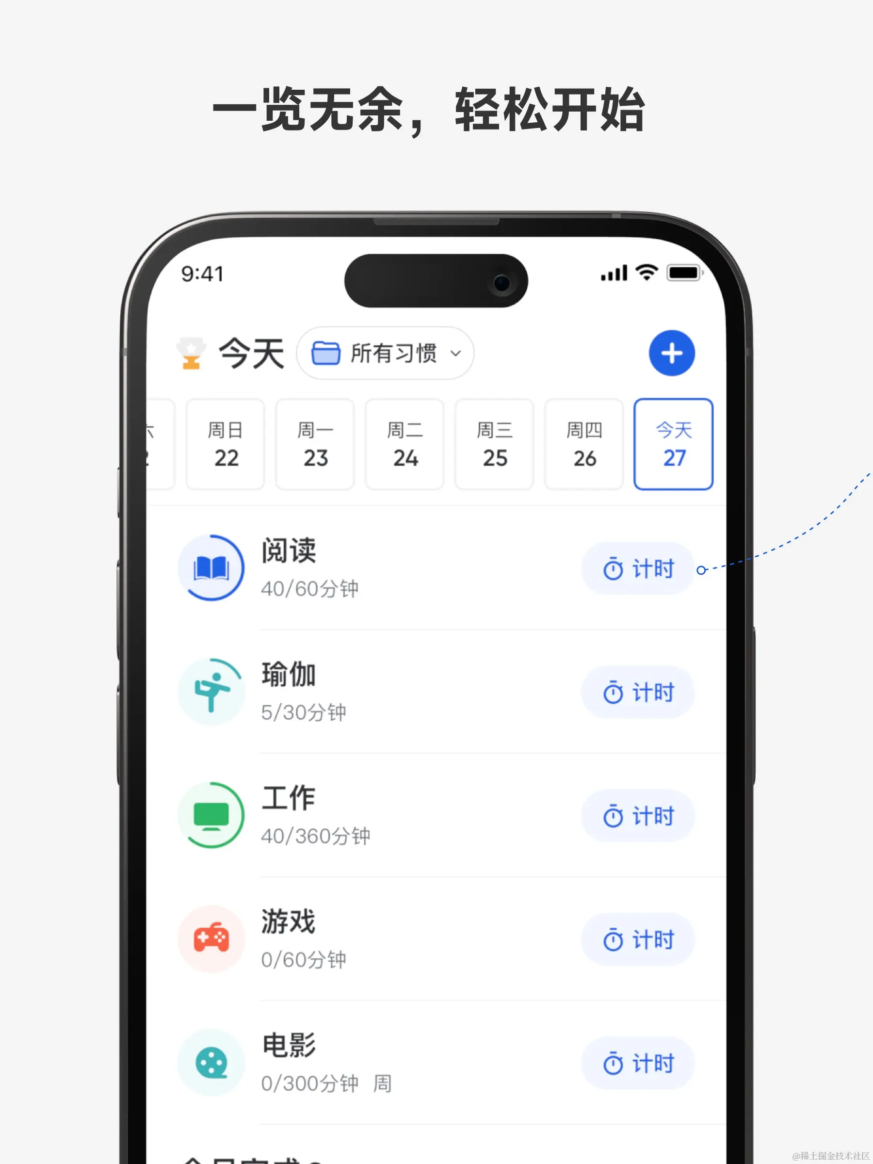 首先记录自己当前每天的时间消耗状况(轻点计时),然后回顾自己一周的时间消耗,开始小步优化自己的时间安排