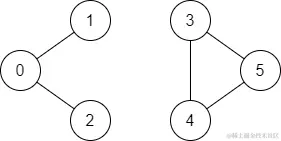 输入: n = 6, edges = [[0,1],[0,2],[3,5],[5,4],[4,3]], source = 0, destination = 5