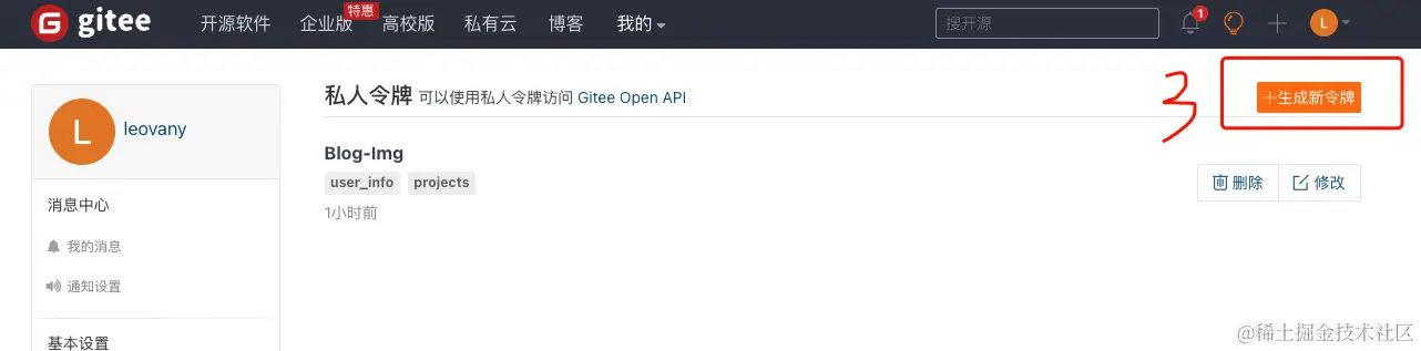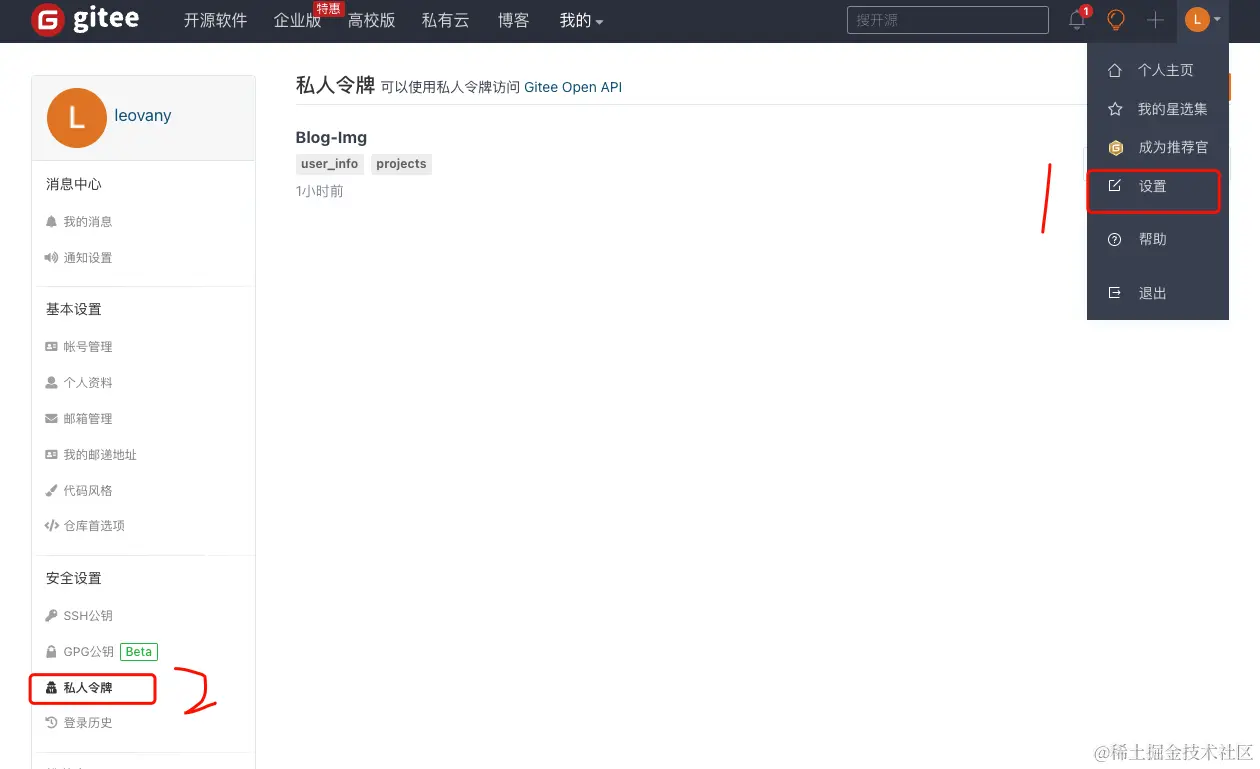 获取【私人令牌】,给PicGo使用
