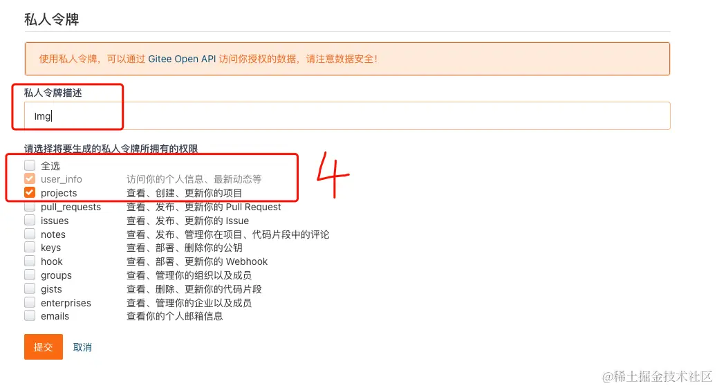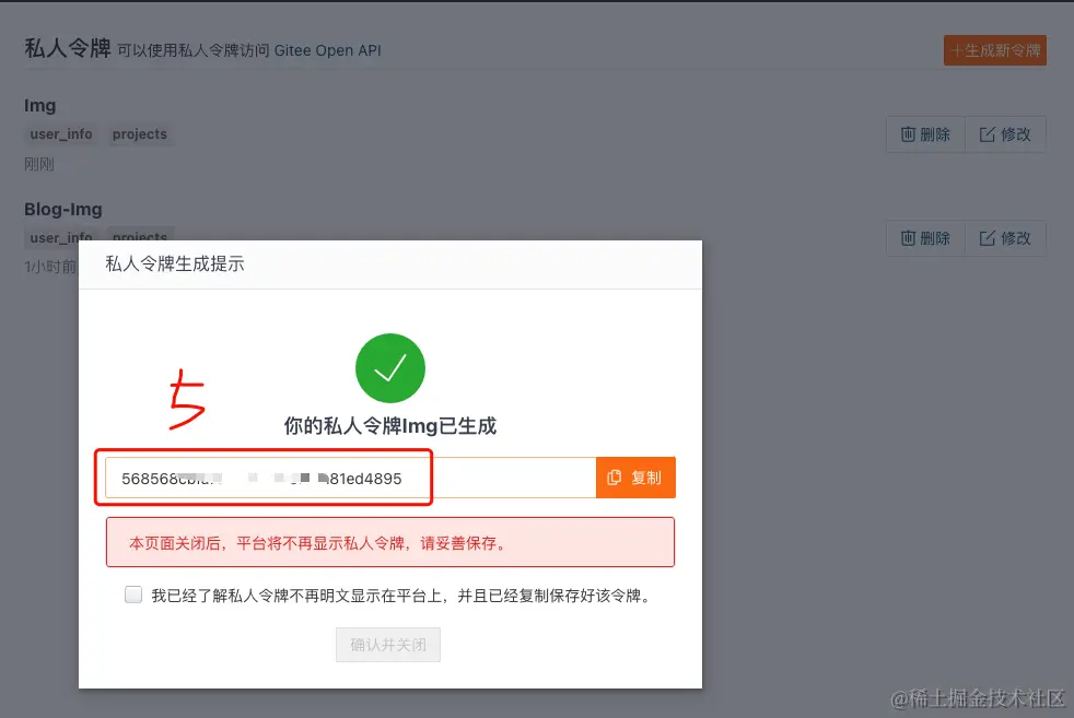 最终获取【私人令牌】,这个在图床配置PicGo要用到