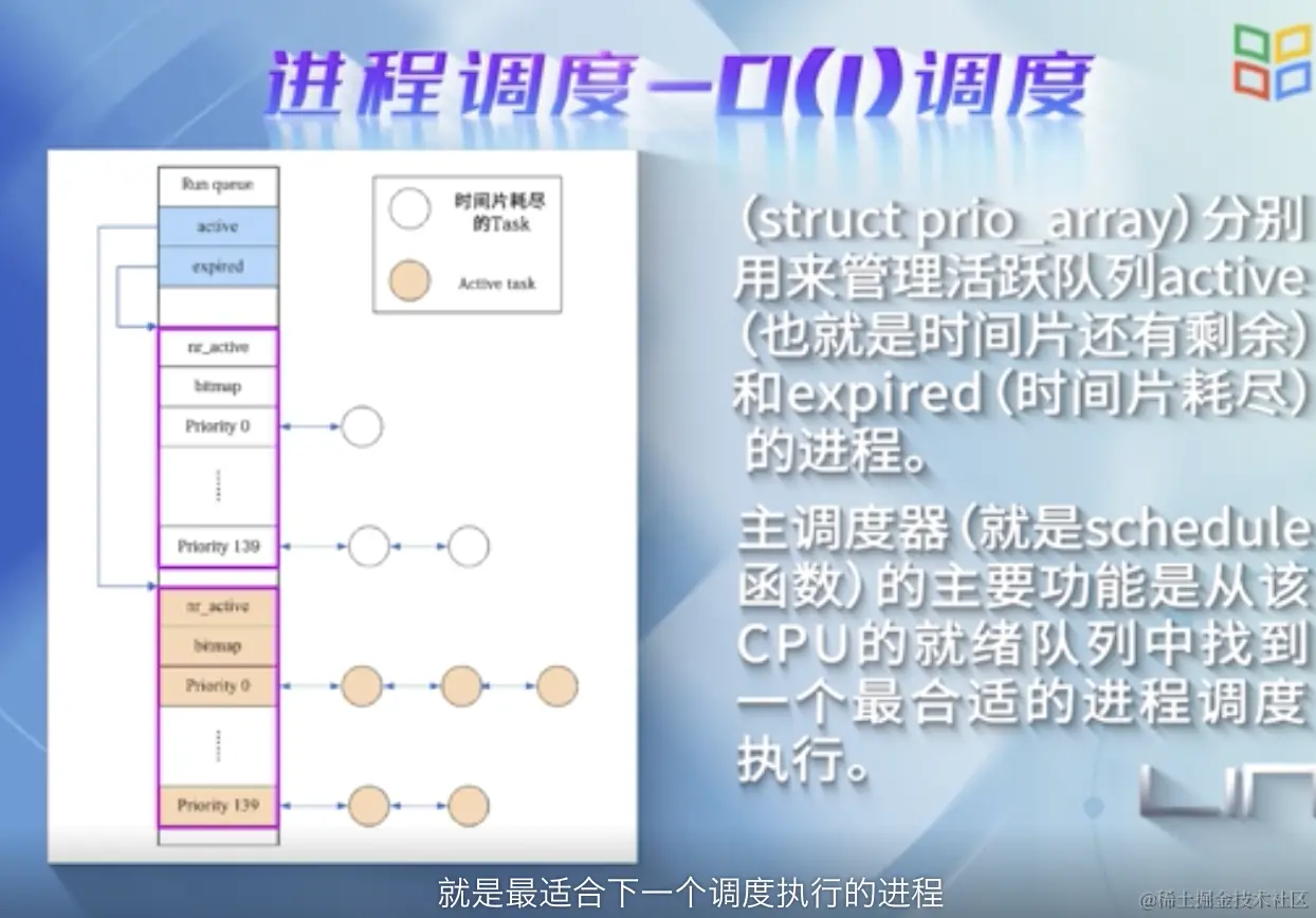 O(1)调度: 将单链表变为多链表来实现,从O(n)降低到了O(1)