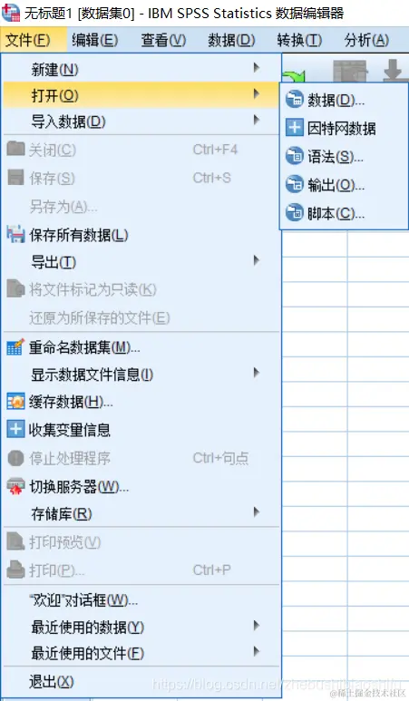 打开SPSS Statistics软件,选择“文件”→“打开”→“数据”。
