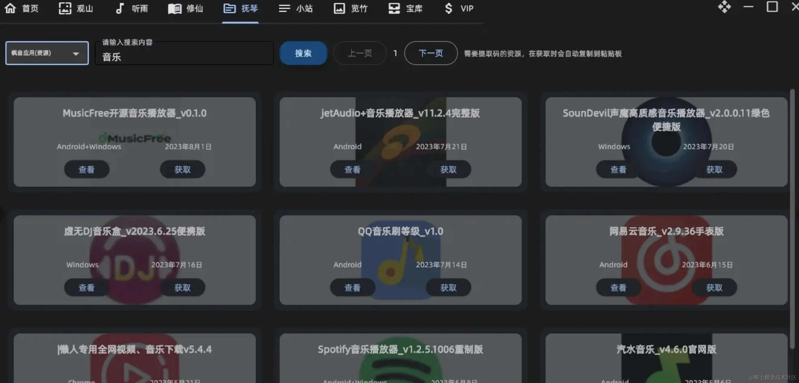 抚琴为资源搜索功能,支持网盘资源搜索,支持软件资源搜索。