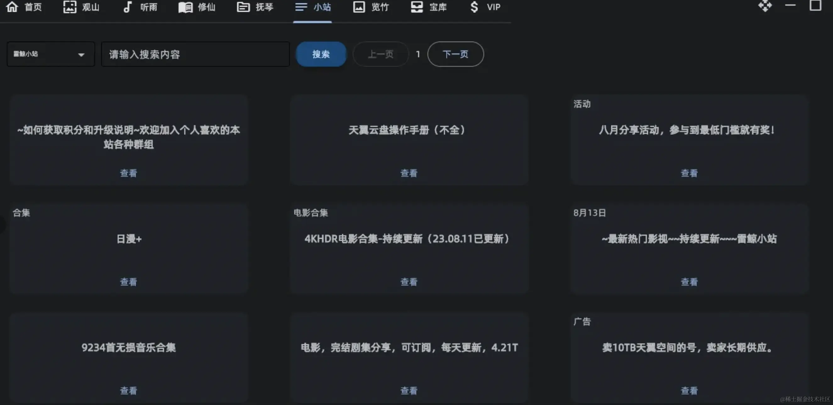 小站支持更多种类资源的获取(高清影视、教程、游戏等),普通用户支持从天翼小站获取资源,VIP同时支持从阿里小站获取资源,还支持获取在线影视资源。