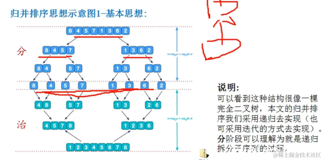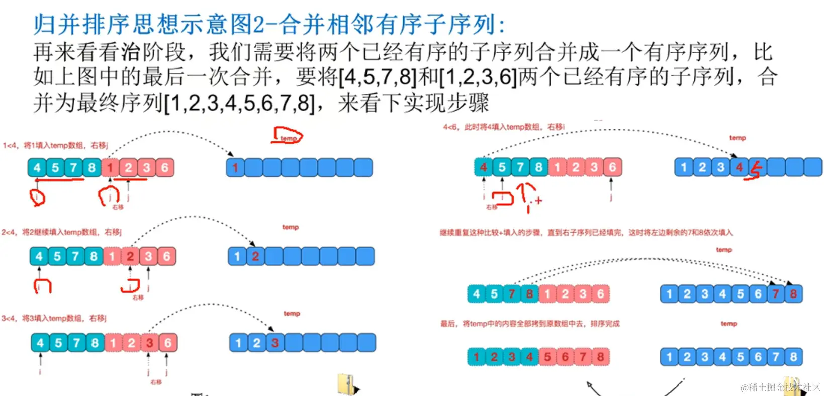 guiBingSort(arr, mid+1, right, temp);//向右递归分解