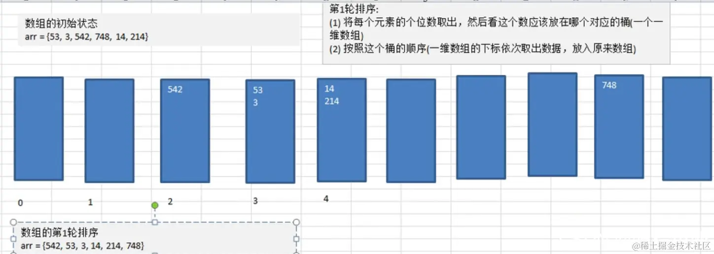 //按照桶的顺序遍历每一个桶,并把数据取出放到原数组