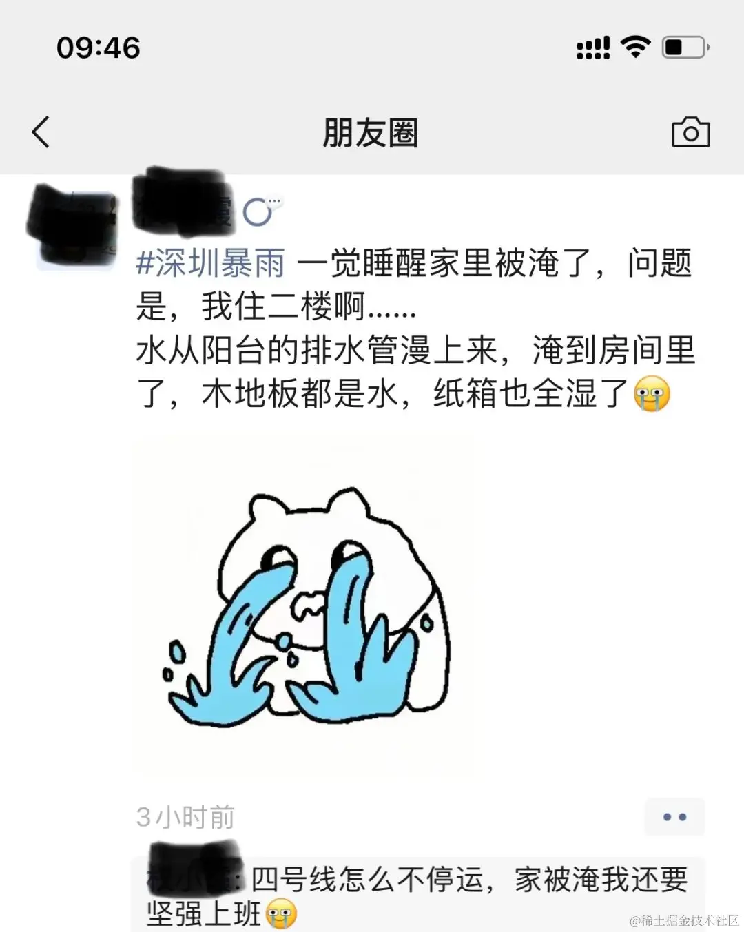家被淹了的朋友也不例外 👍 为坚强上班的打工人致敬!