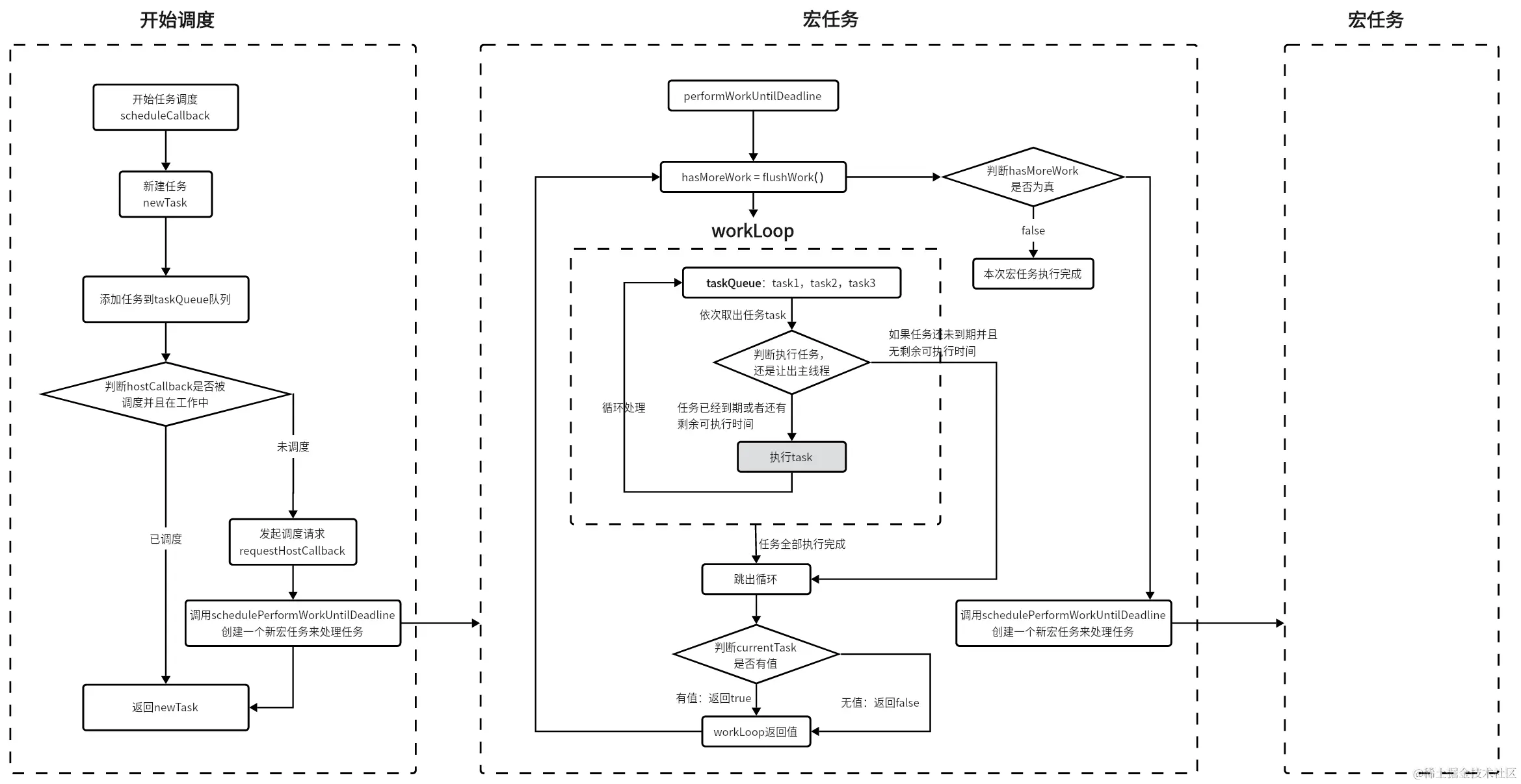 frameInterval【默认5ms】,则返回false,不需要让出主线程,可以继续执行任务。 -
