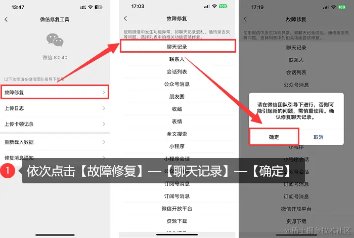 方法一:使用微信自带修复工具恢复聊天记录
