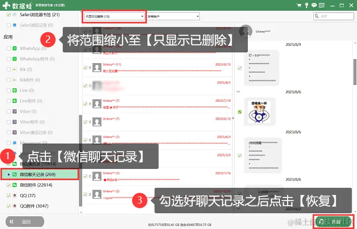 注意:软件恢复概率高但并不意味着能百分之百将聊天记录恢复回来。