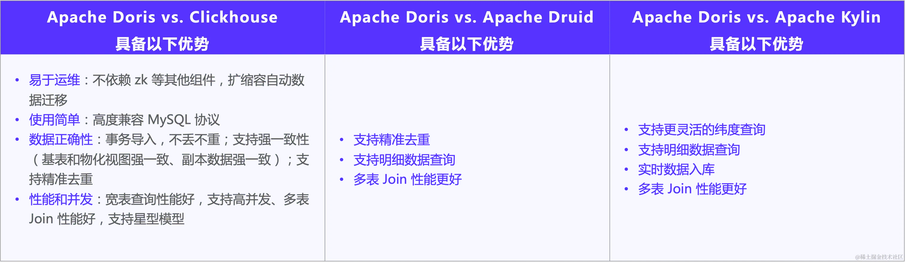 保证数据正确性: Apache Doris 支持事务导入,Bitmap 功能支持精准去重,保证数据不丢不重;同时支持精准写入,保证数据基表与物化视图强一致性、副本数据强一致性。