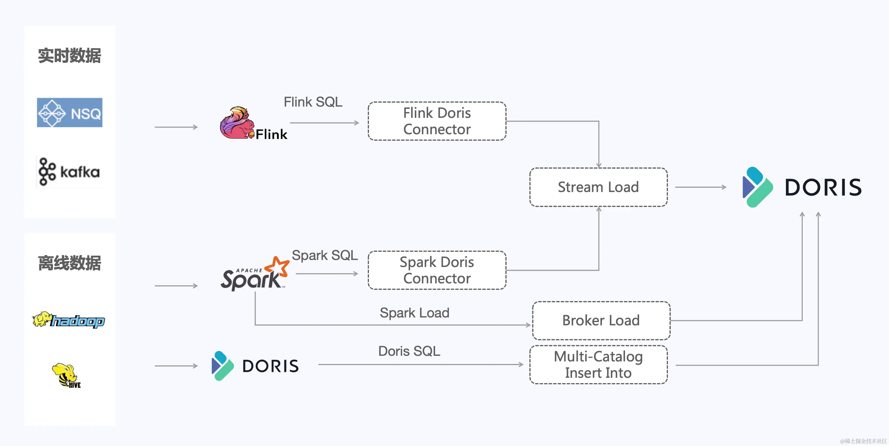 支持 Doris Multi-Catalog 功能直接读取 外部数据源并通过 Insert Into 方式写入 Doris。