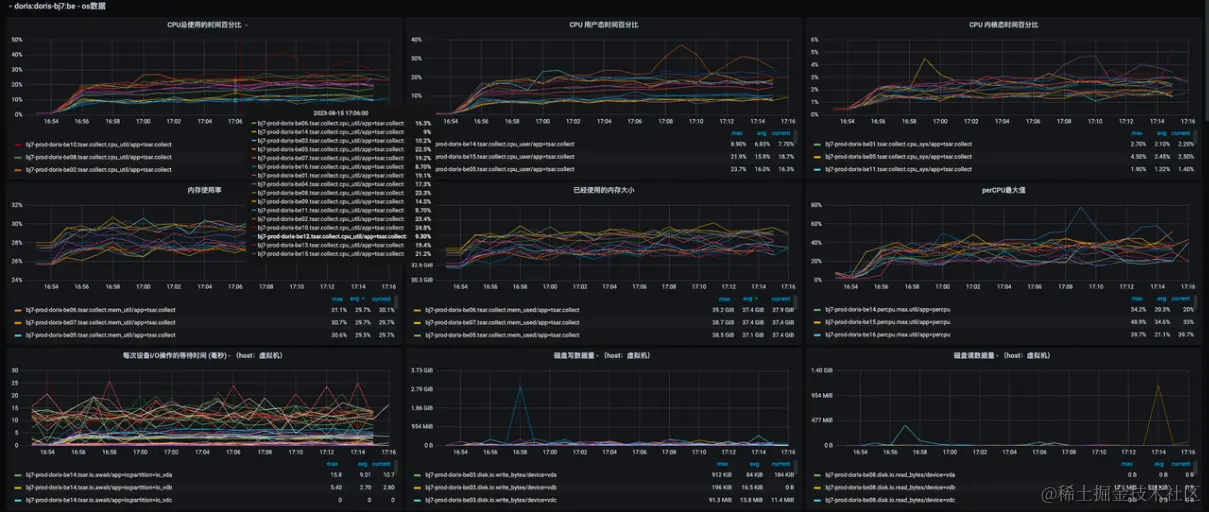 Spark Doris Connector 格式导入的并行度为 80,单批为 100 万,集群的负载情况如下: