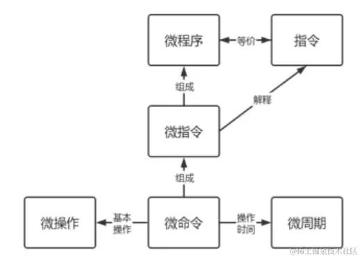 ②一条机器指令对应一段微程序,该微程序由若干条微指令组成;