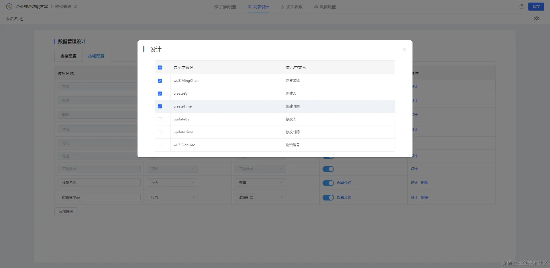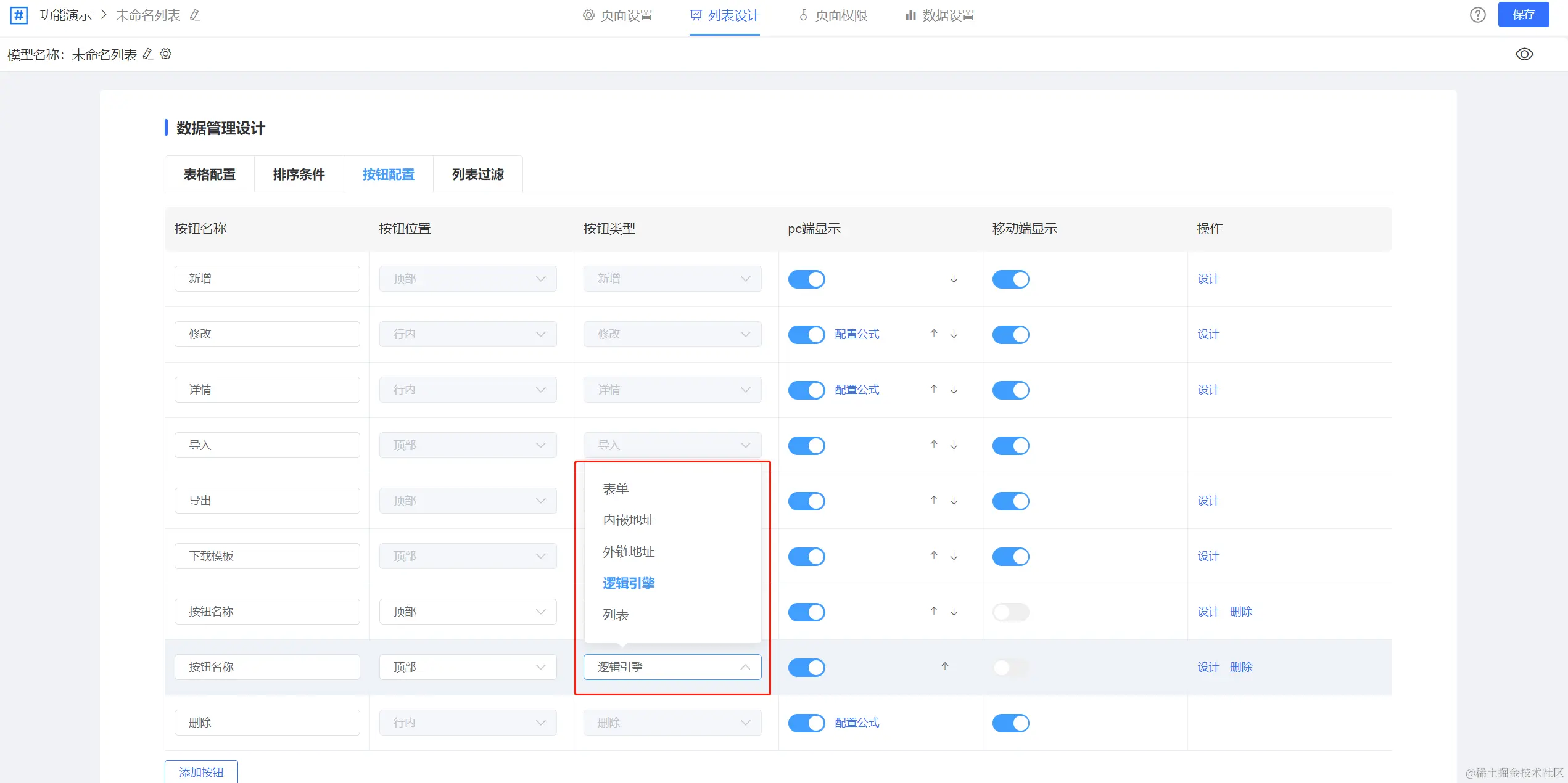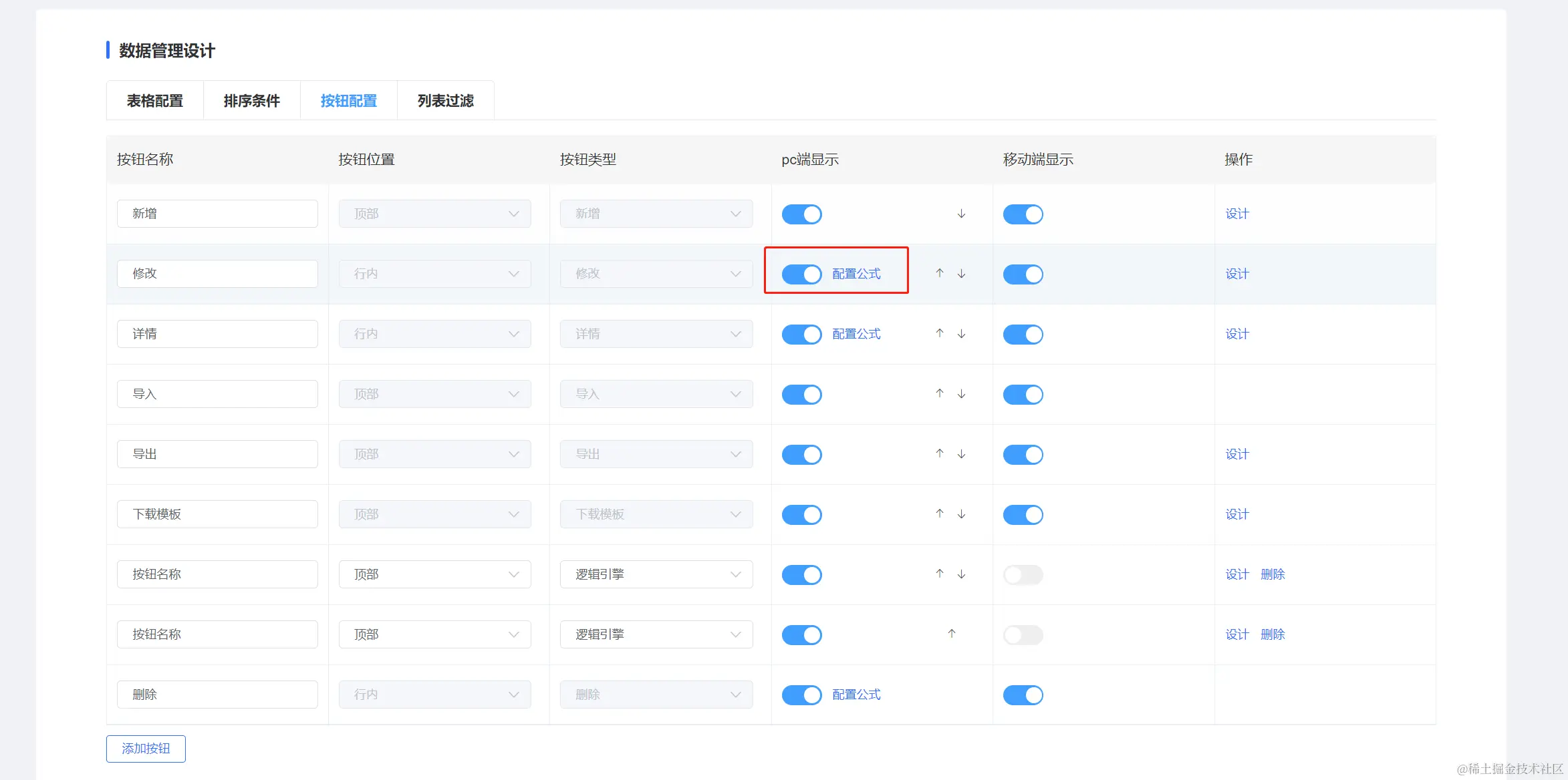 一、列表页按钮配置