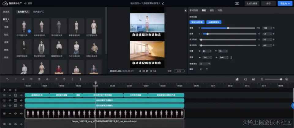 四是数字人与背景、前景等多类元素合成时,需要充分融合表达画面一致性,提升视觉细节精致度和画面感染力, 这更是最终数字人成品质量的关键。
