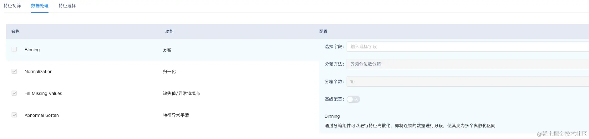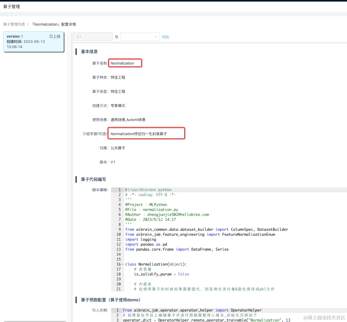 特征清洗的例子如下,AI平台先将部分特征工程逻辑算子化,如下图Normalizaiton为归一化算子。
