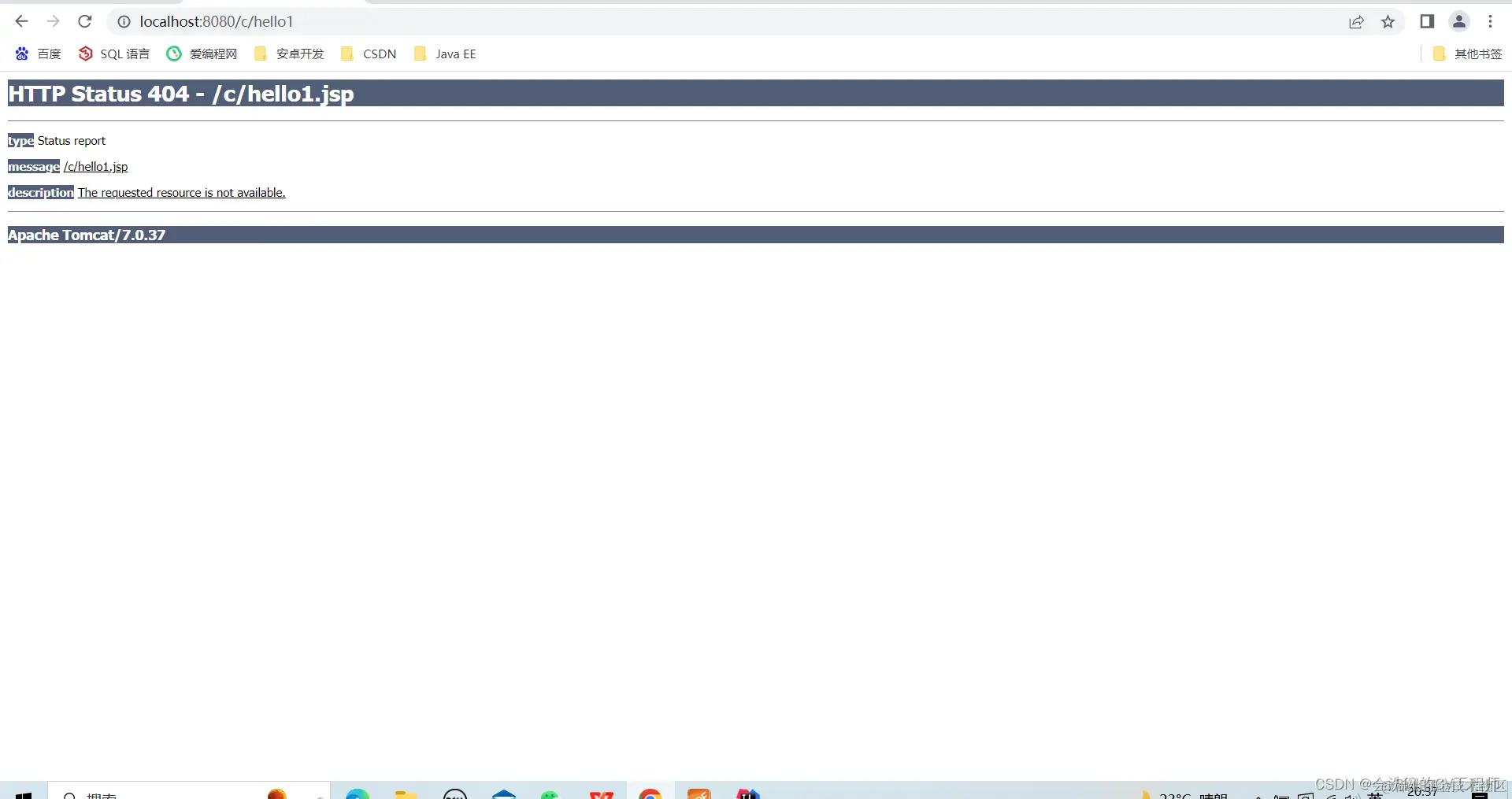在网址栏输入localhost:8080/c/hello1 回车运行,可以看到如下图,