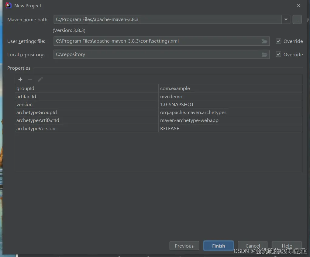一直Next,直到下图,确定好项目名和项目位置。点击finish