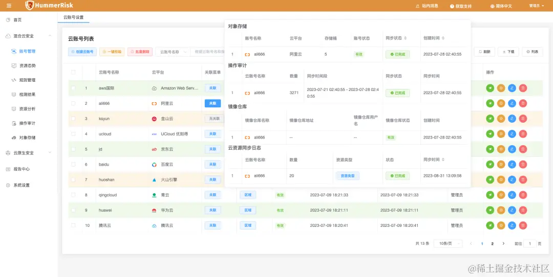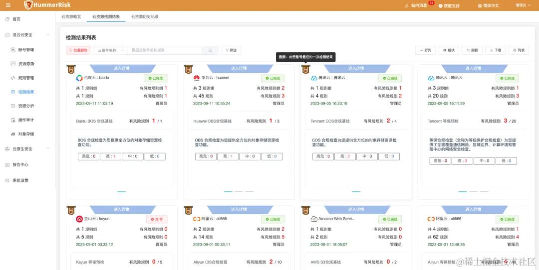 大家好,增加检测整合报告下载,定制多云整合报告并下载PDF,增加K8s 检测规则组,Kubernetes、Rancher、KubeSphere 检测规则组以及规则。新增云账号管理页面关联菜单,新增资源同步日志。优化检测结果列表等内容。