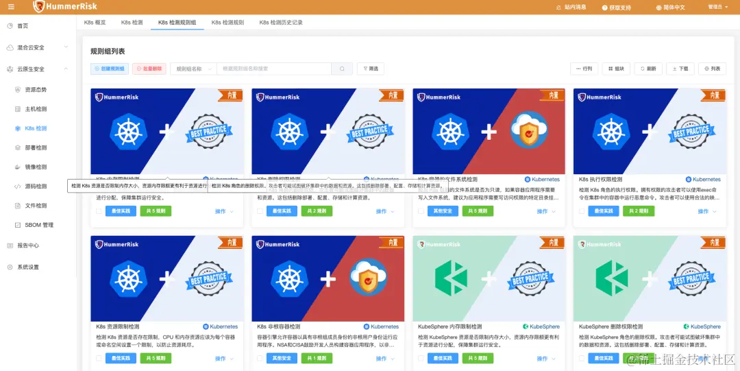 新增 Kubernetes、Rancher、KubeSphere 检测规则组以及规则。