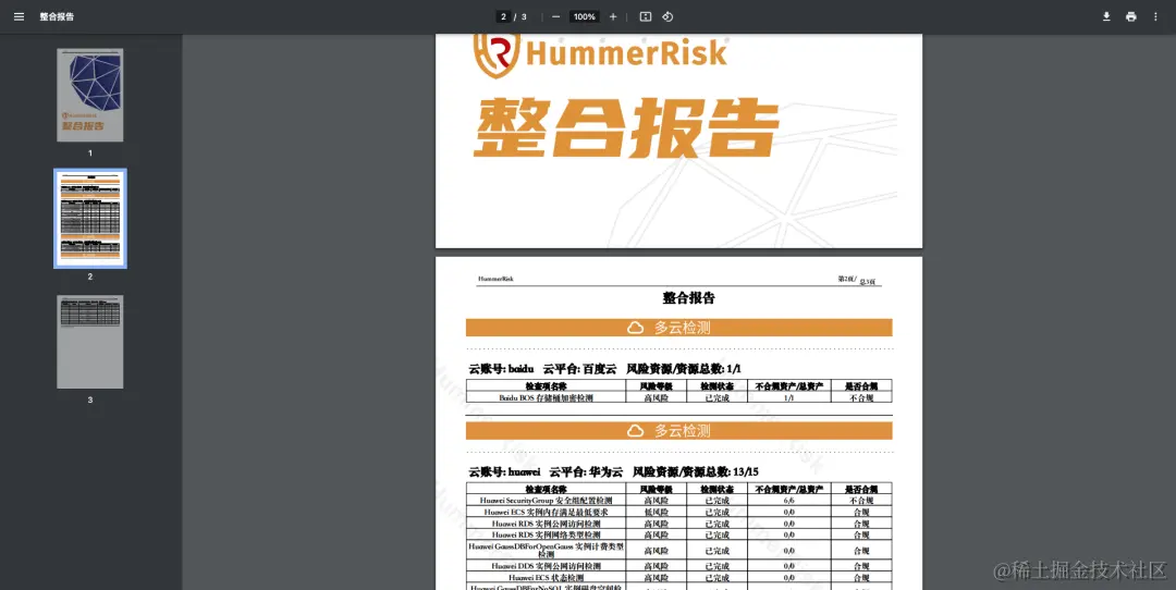 定制整合报告功能,生成并下载为 PDF 格式。原下载报告菜单改名为云资源合规分析。