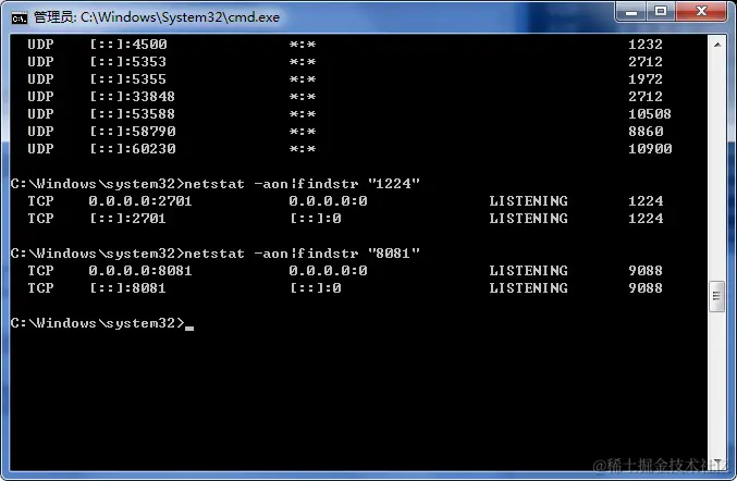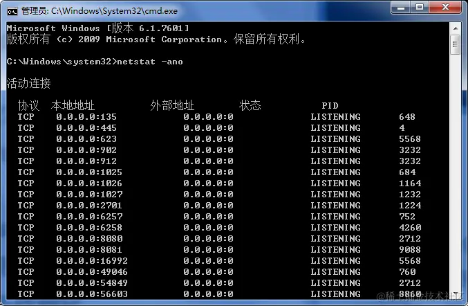 查看被占用端口对应的 PID