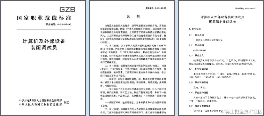 国家职业技能标准——计算机及外部设备装配调试员。