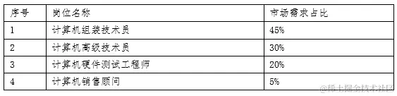 通过对就业市场的调查分析,中职计算机组装与维护人才岗位分布如下: