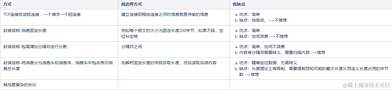 - 半包:收到半个包。如送的包的大小比TCP发送缓冲区容量大或者发送的数据大于协议的最大传输单元(MTU),那么这个数据包就会被分成多个包,通过socket多次发送到服务端,服务端第一次从缓冲区获取到的数据时整个全包的一部分