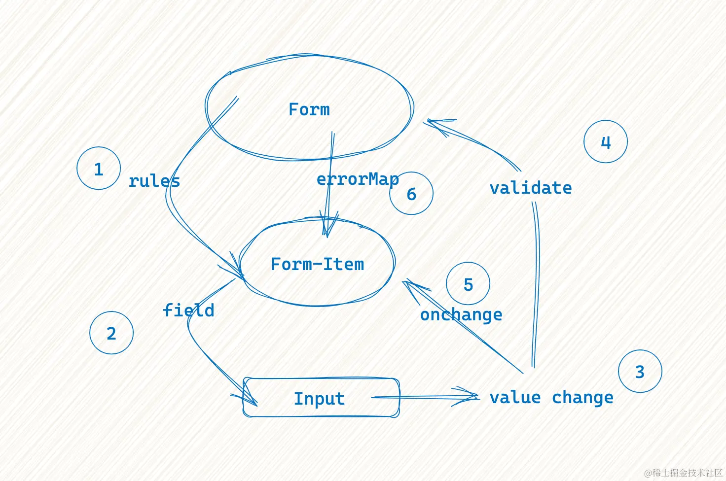 有些兄弟就会好奇,这些个 input 框改变的时候,是怎么能触发到顶部 form 的校验的呢?