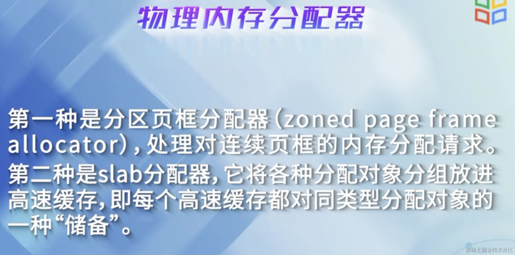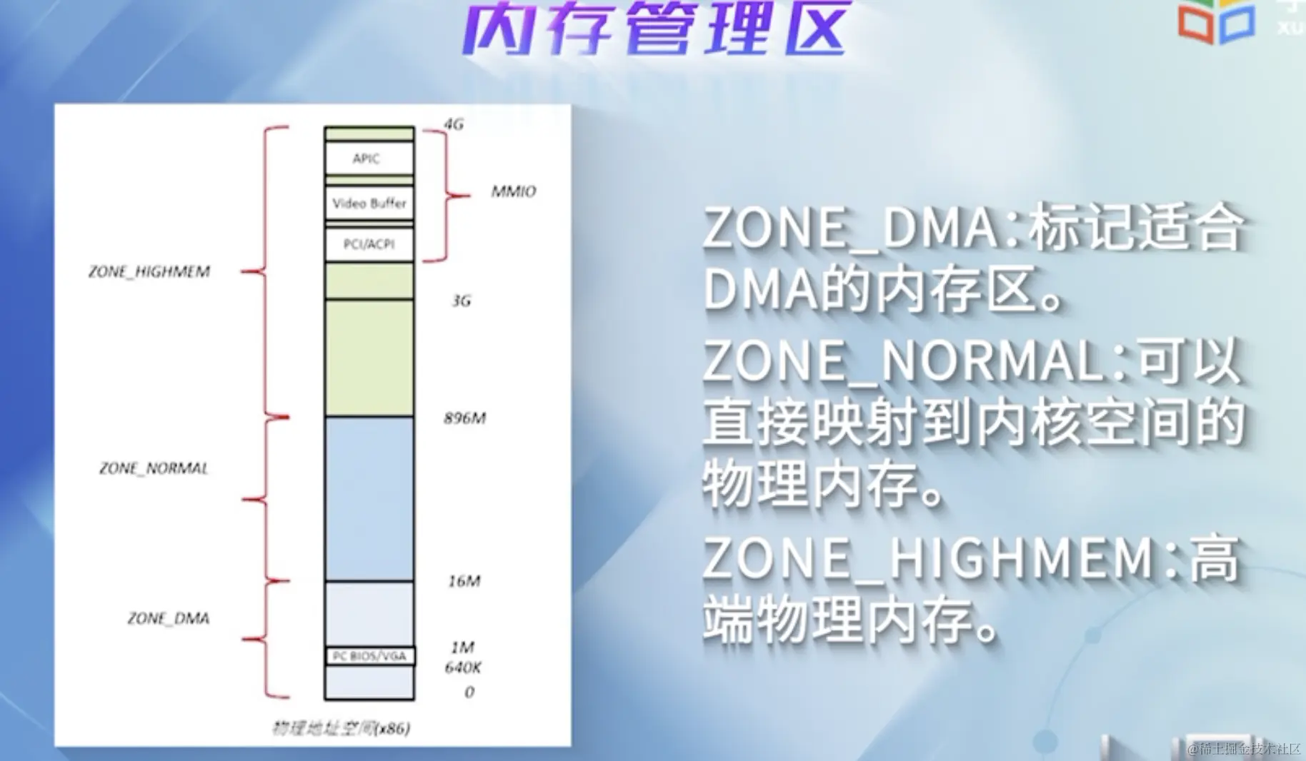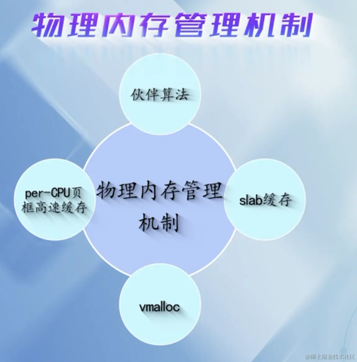 伙伴算法: 负责大块连续物理内存的分配和释放,以页框为基本单位. 该机制可以避免外部碎片.
