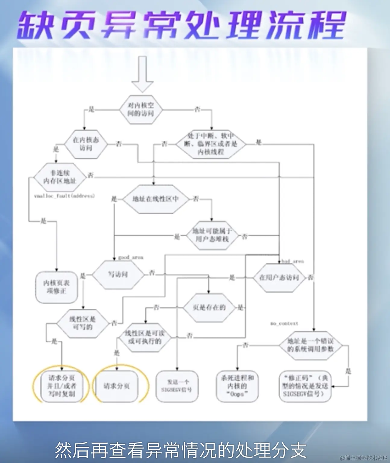 如果是编程引起的异常,而且还发生在内核态,那需要毫不含糊地杀死该进程; 如果发生在用户态,说明是一个无效的内存引用,程序要停止执行; 如果是一个真正的缺页引起的异常,而且有合法的权限,这时会进入到缺页异常处理程序