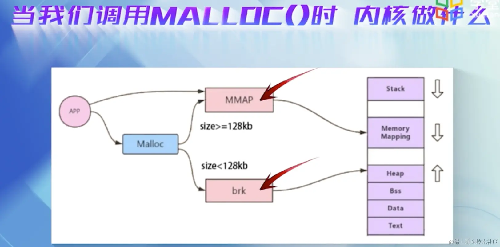 malloc()从堆中分配一块内存,并将首地址返回给用户.