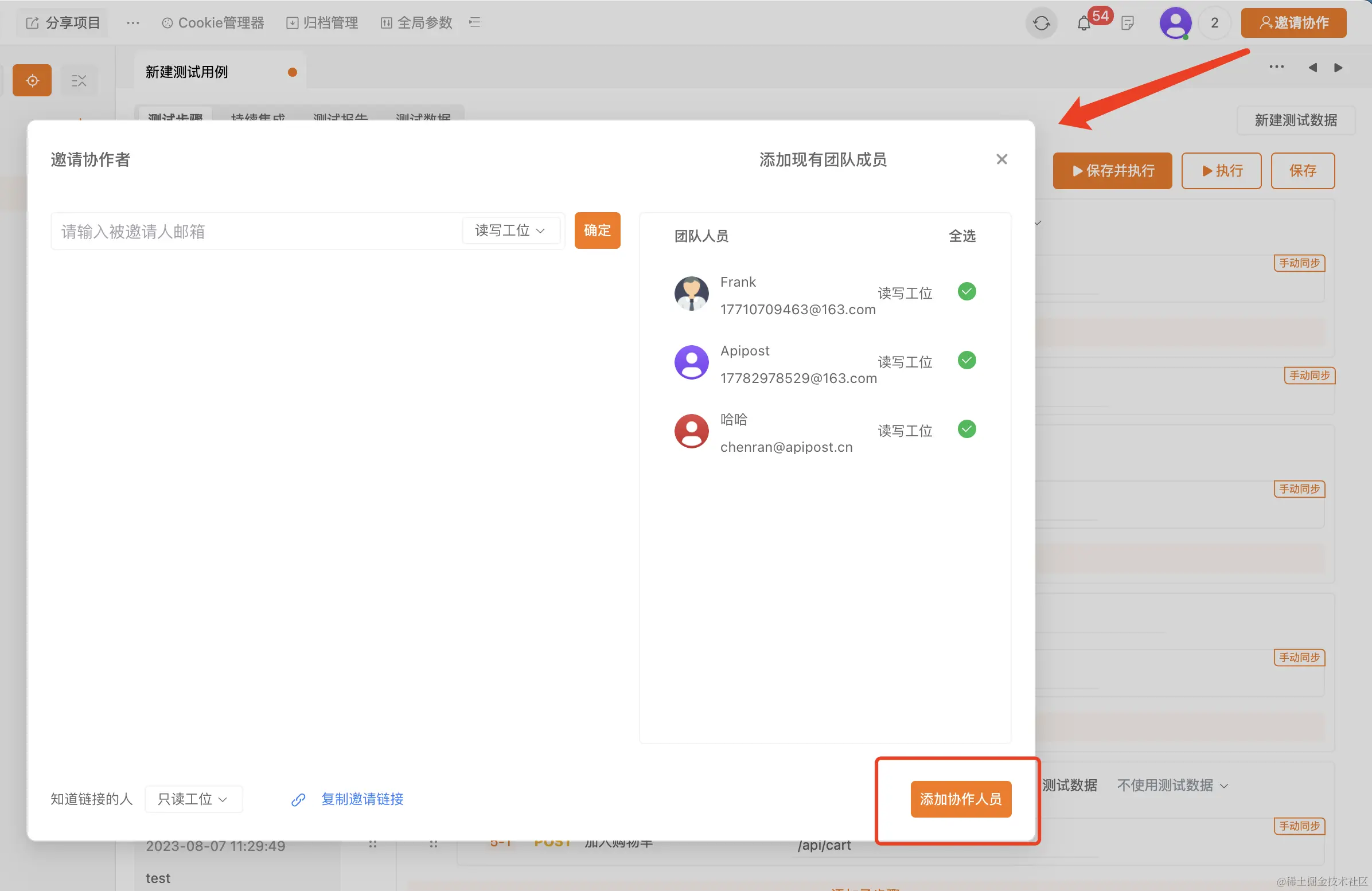 Apipost支持团队协作,让多个团队成员可以同时开发和测试API。它提供了团队管理功能,让团队成员可以共享API信息和任务。此外,Apipost还支持版本管理和分支管理等功能,方便团队成员进行协同开发和迭代。