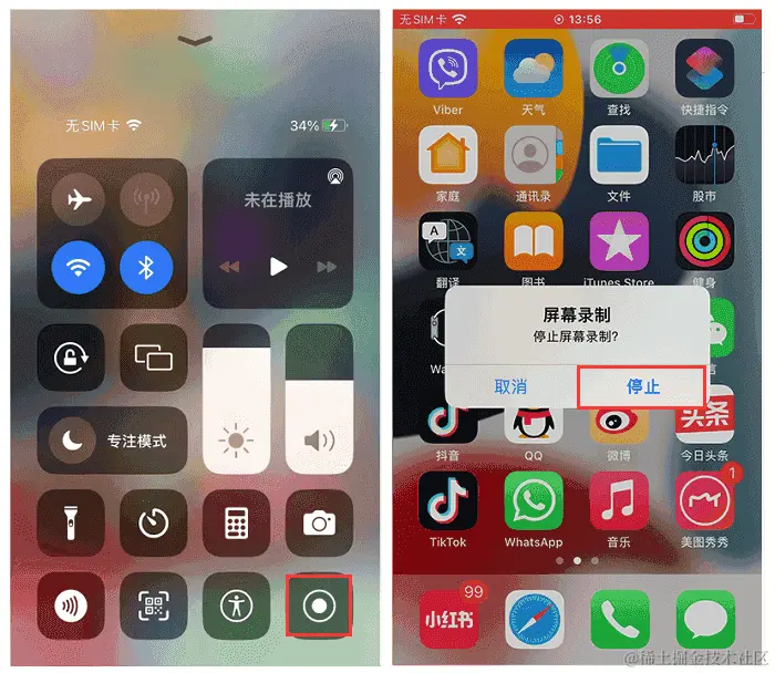 第3步:再次点击 “控制中心” 中的 “录屏” 图标,或者通过状态栏上的红色录制标志停止录制,视频将保存到相册中。