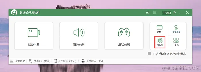 第1步:首先,在浏览器中搜索并下载安装数据蛙录屏软件。安装完成后,打开软件并选择录制模式,我们选择 “录手机” 模式。