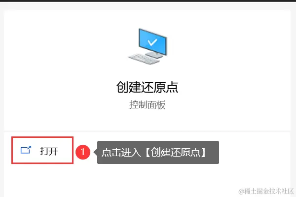 步骤1:按下 【Win+S】 键,搜索 【创建还原点】并打开;