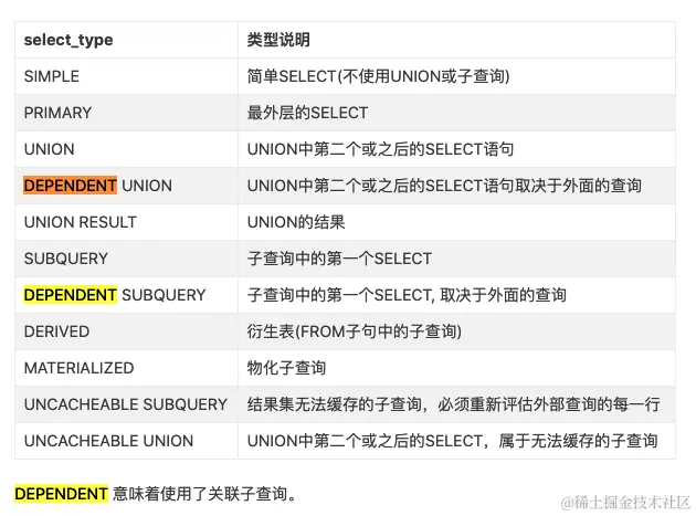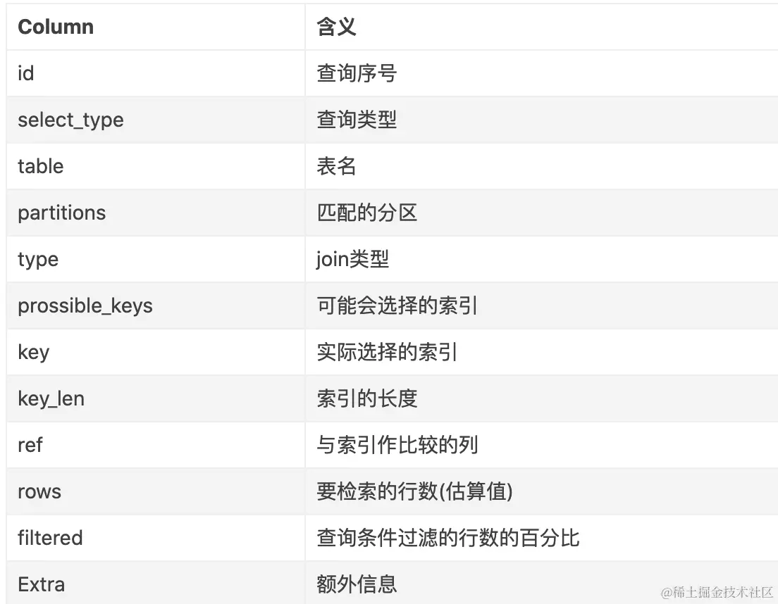 explain 中的很多额外信息会在 Extra 字段显示, 常见的有以下几种内容: