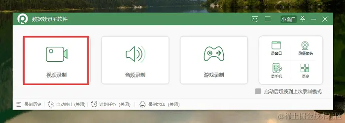 第1步:在电脑上下载并安装数据蛙录屏软件,我们先使用它录制一段需要剪辑的视频素材,打开 “视频录制” 模式。