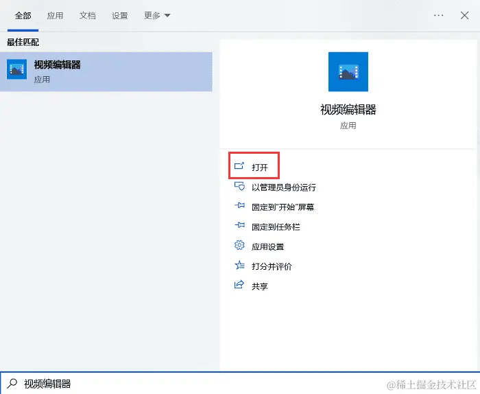 第1步:打开您电脑上自带的 “视频编辑器” ,您可以通过 “搜索栏” 查找到它。