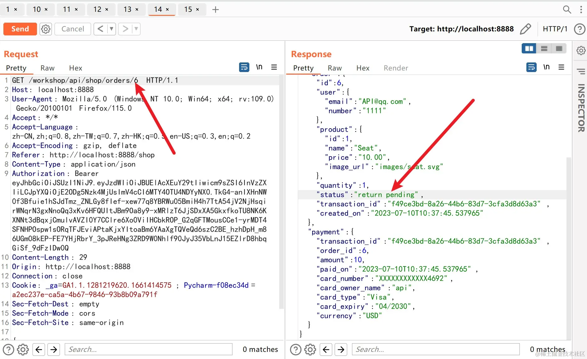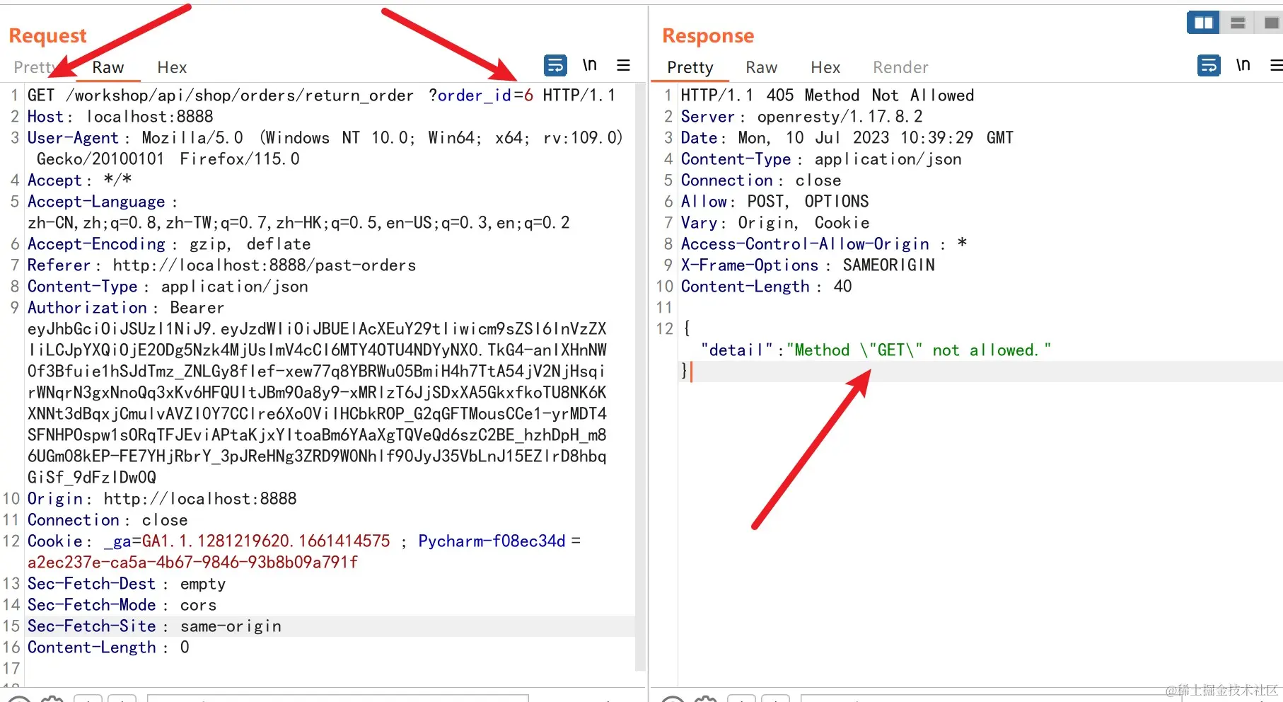 直接切换成GET请求爆出了无权使用的消息,不慌张我们试试尝试着先把这个货品退回再用之前的方式利用