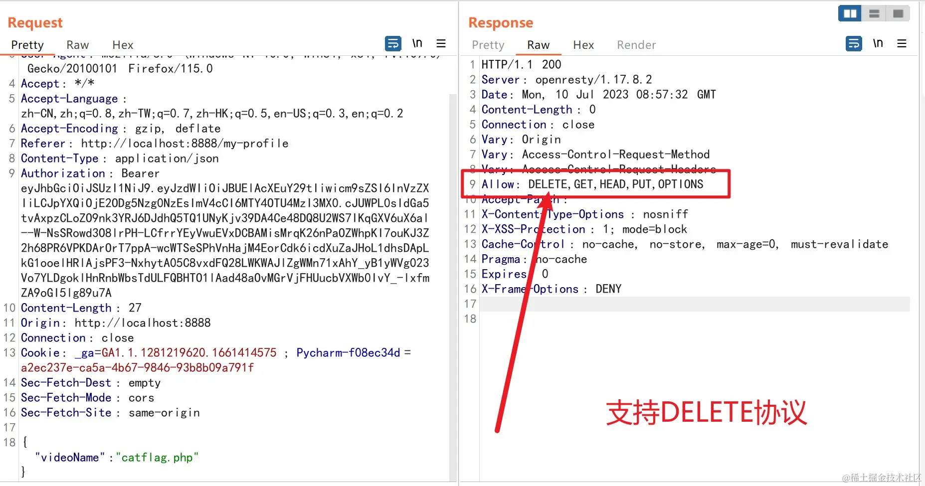 还是lab5处的抓包,我们修改一下协议,把PUT修改为OPTIONS