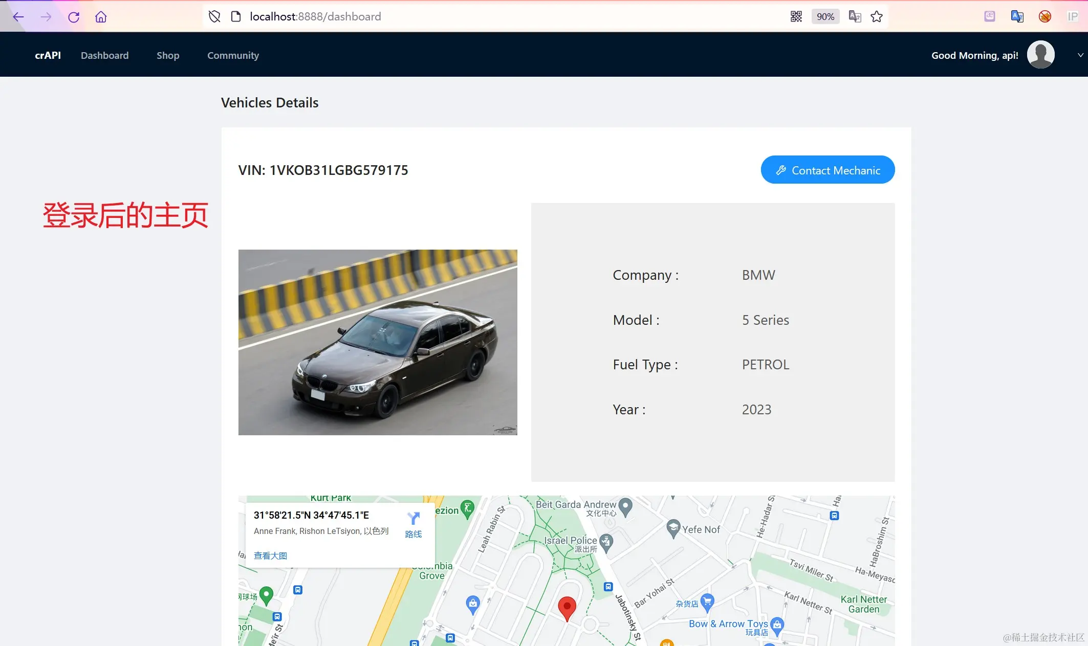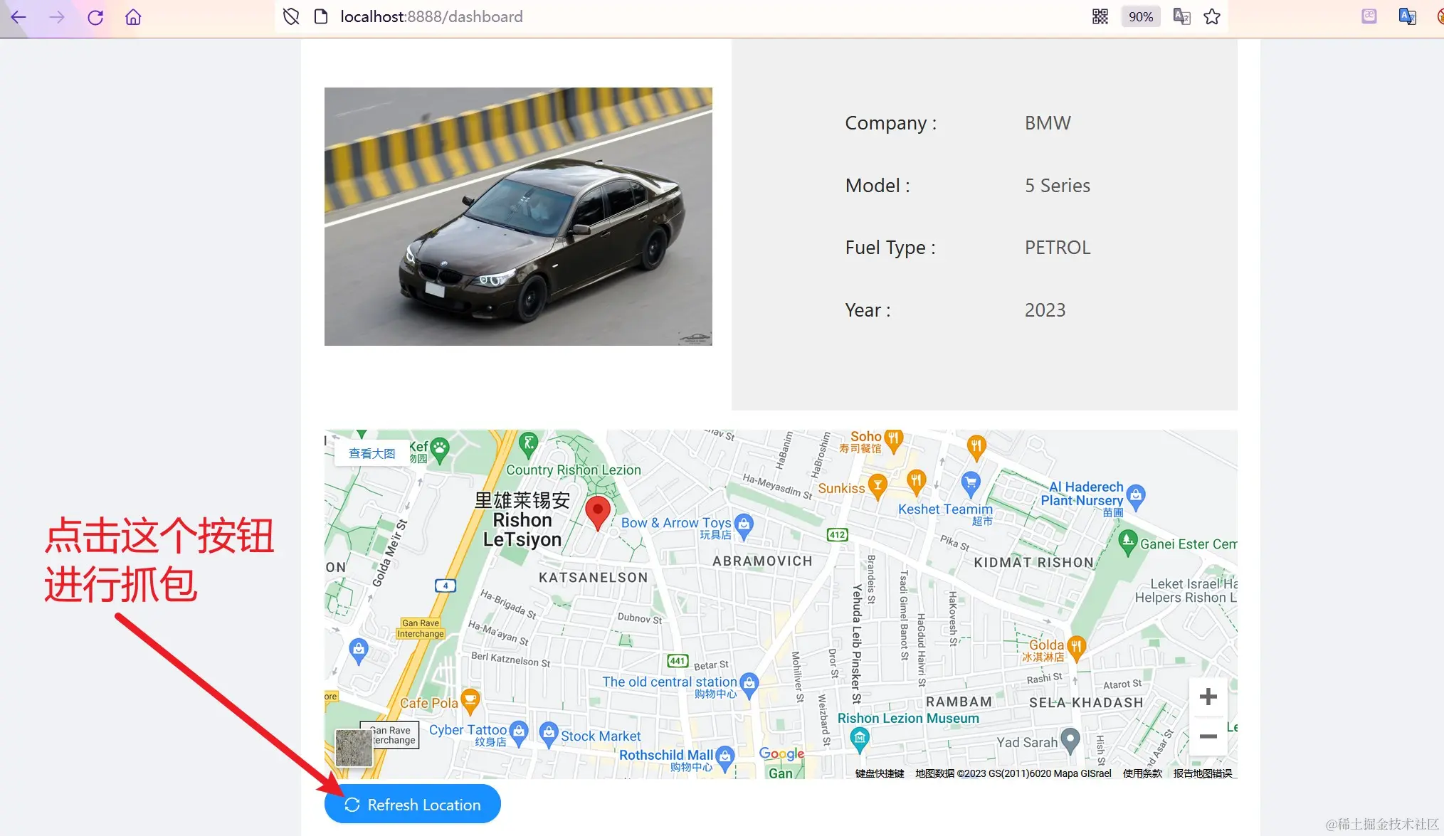 - 要查车辆信息,现在我们只有Dashboard页面存在车辆信息,我们尝试抓包这个页面,抓了下首页发现是应该根据我们当前用户的Cookie来返回的,我们再找找有没有其他地方: