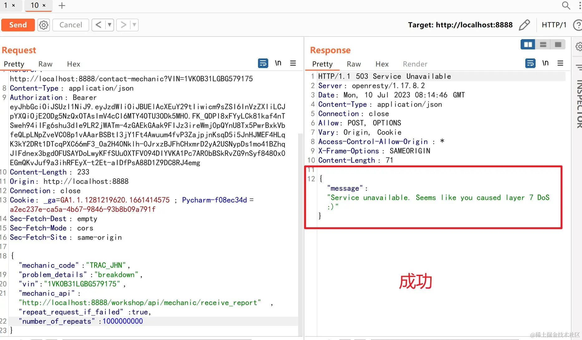 lab6: 使用 "contact mechanic"功能完成第7[层DoS]