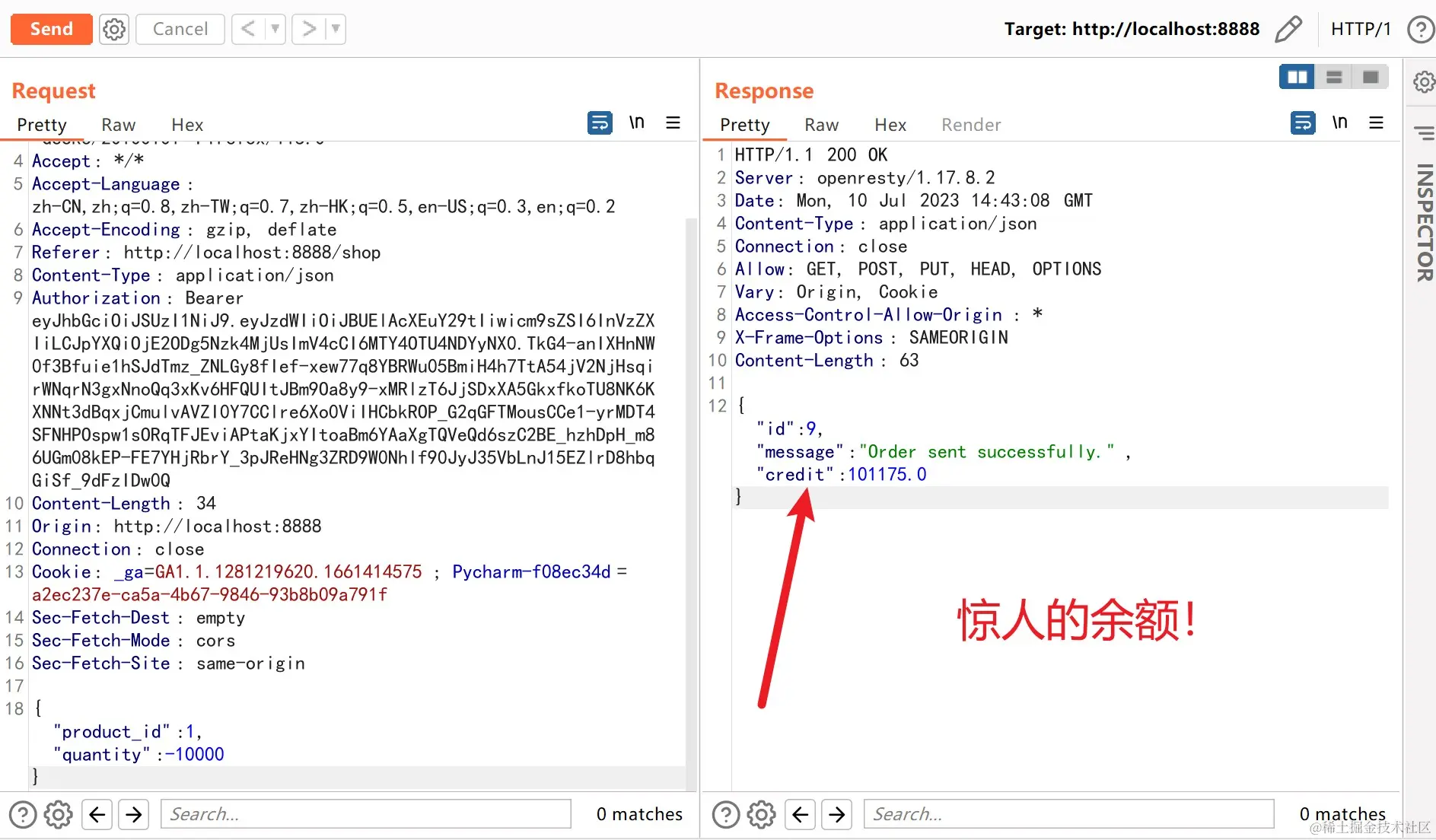 先将quantity改为100,status改为delivered,这样我们就可以不花钱就点了100个价值10元的椅子