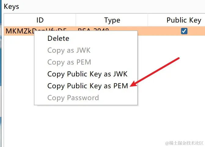 到 JWT选项卡,点击New RSA Key 复制 JWK key 内容