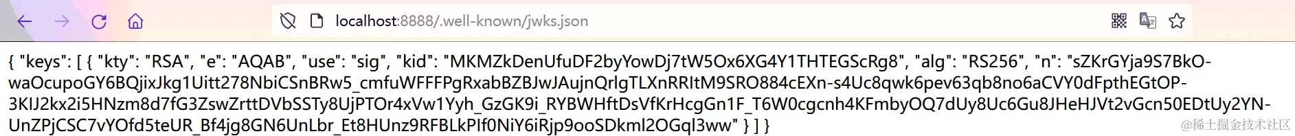 通过访问http://localhost:8888/.well-known/jwks.json 获取JWT的公钥