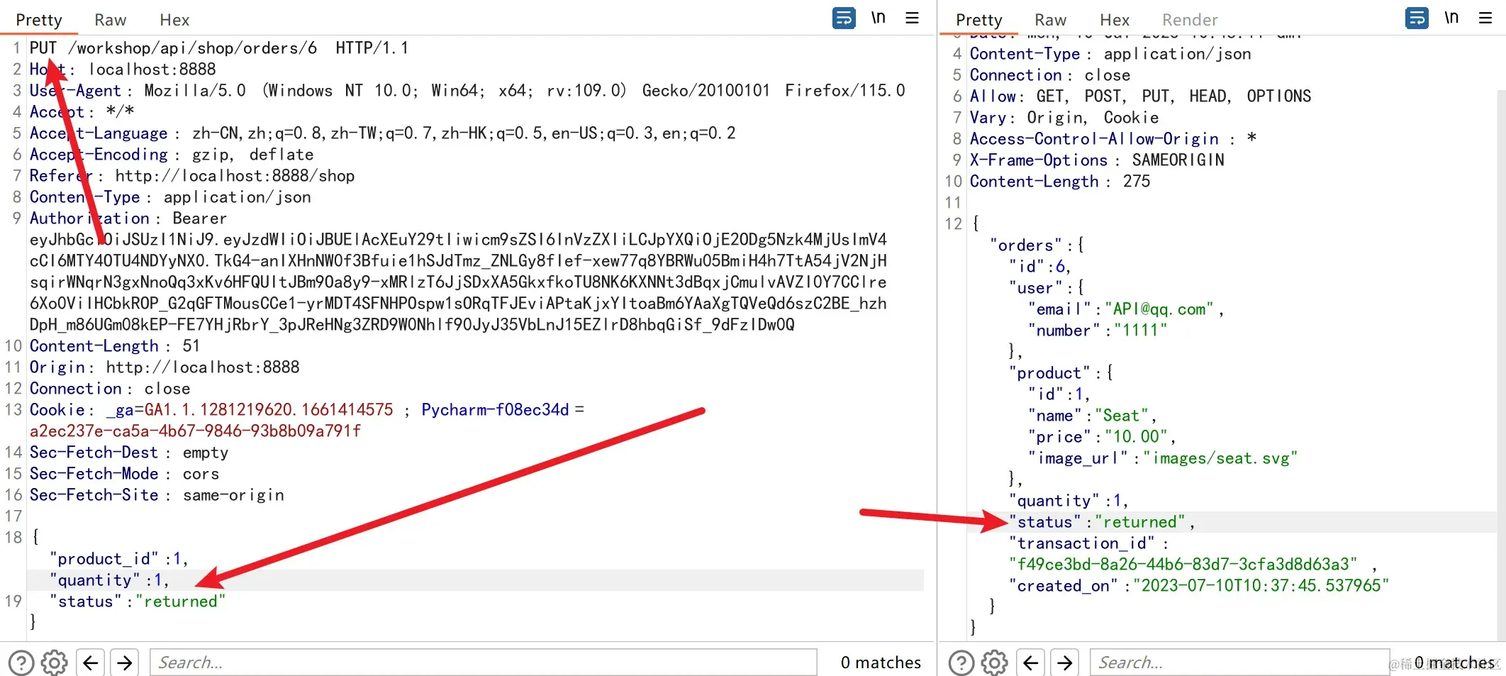 这里我们大胆猜想退回的状态就是returned进行修改试试,注意由于status是原来就有的数据,所以这里我们需要用PUT协议进行提交而不是POST协议: