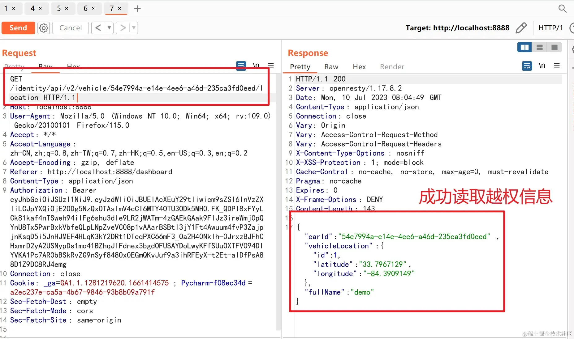 我们将其替换为demo用户的vehicleid 信息54e7994a-e14e-4ee6-a46d-235ca3fd0eed